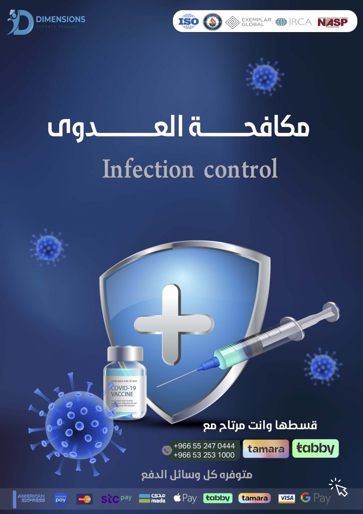 :“كن درع الأمان لمنشأتك الصحية؛ احصل على شهادة أخصائي مكافحة العدوى المعتمد.” “Be the safety shield for your healthcare facility; become a Certified Infection Control Specialist.”